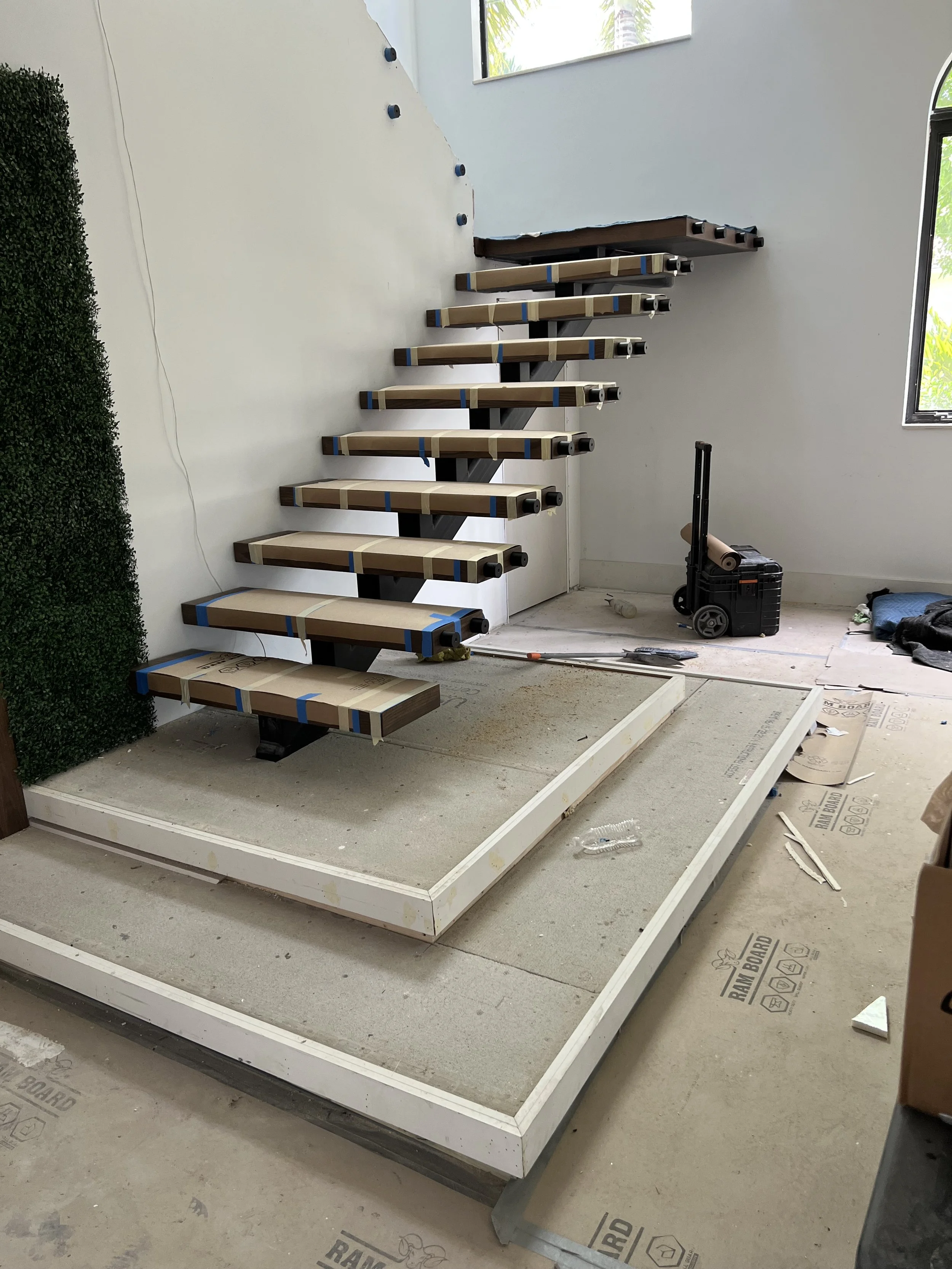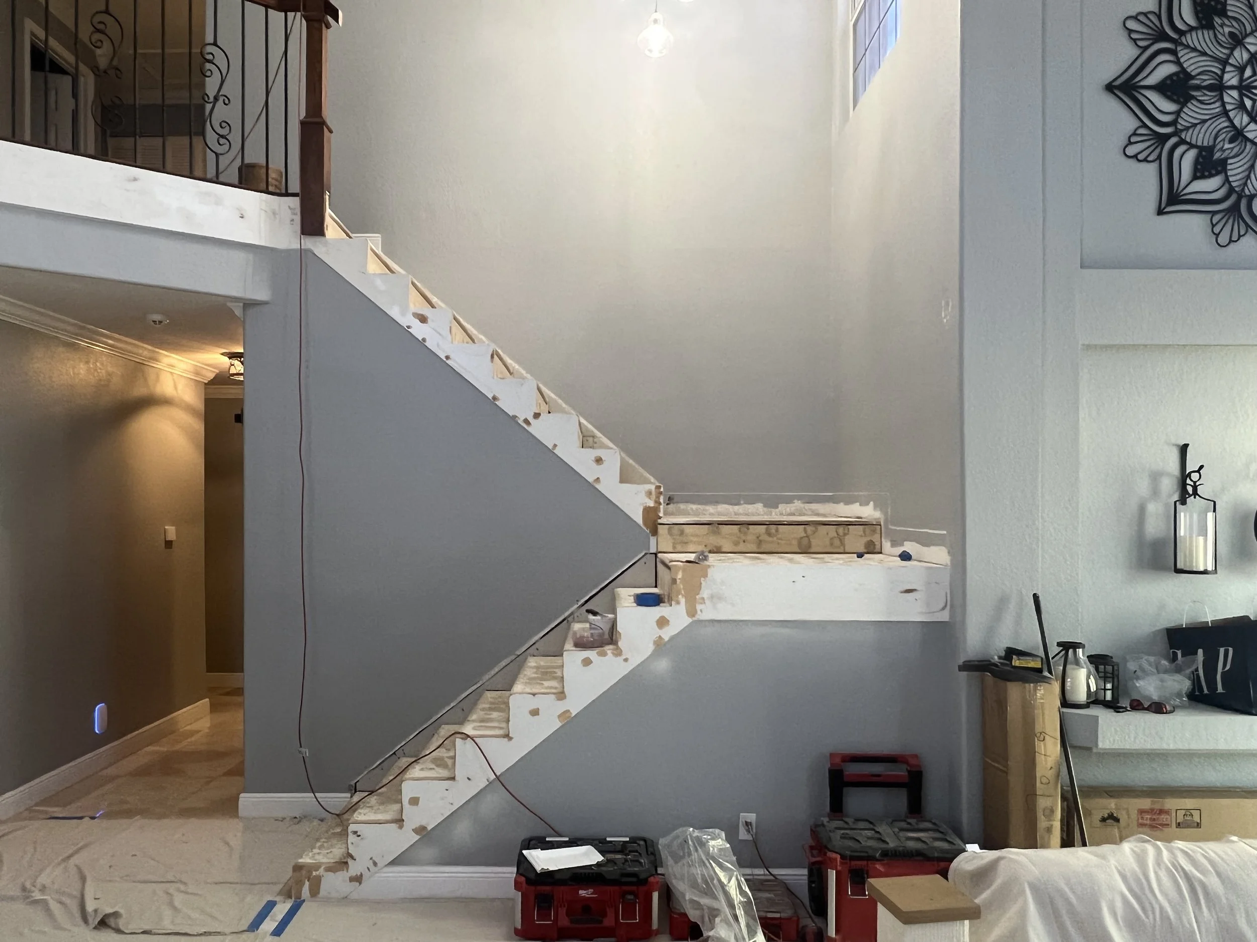 Every great staircase begins with a solid foundation. This behind-the-scenes look captures the early stages of construction, where structure, alignment, and craftsmanship come together. From framing to detailed measurements, we ensure every step is built with precision before the final transformation.