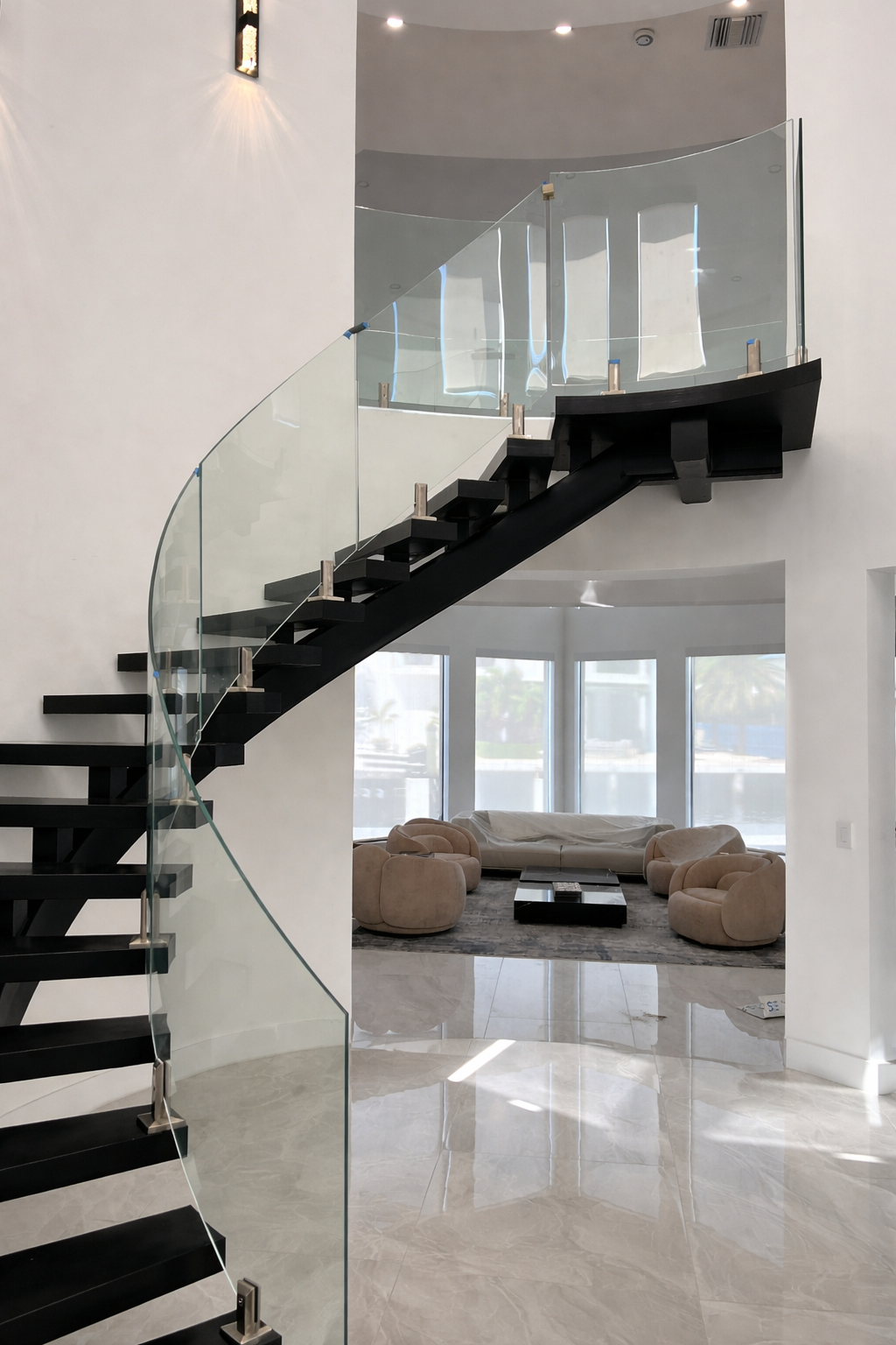 Contemporary Floating Staircase with Glass Railing